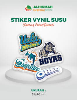 Rp 8.000pesifikasi : – Bahan sticker plastik vinyl – Tahan air – Harga sudah termasuk potong die cut (cutting putus) [MINIMAL ORDER DAN KELIPATAN] Harga di atas adalah harga satuan per pcs, silahkan order sesuai dengan jumlah minimum order sebagai berikut : – 3 cm Min. Order : 126 pcs berlaku kelipatannya 126, 252, … dst… selengkapnya
