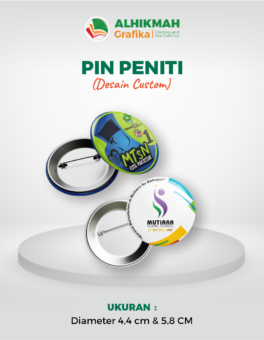PIN PENITI DESAIN CUSTOM – Bahan cetak : Artpaper – Laminasi Panas Glossy/Doff – kualitas cetak menggunakan digital printing, warna tajam dan tidak mudah luntur MINIMAL PEMESANAN 30PCS Ketentuan Pemesanan : Desain dapat dikirim melalui chat wa atau email alhikmahgrafika@gmail.com Isi catatan pembeli dengan nama email yang digunakan untuk kirim file atau desain… selengkapnya